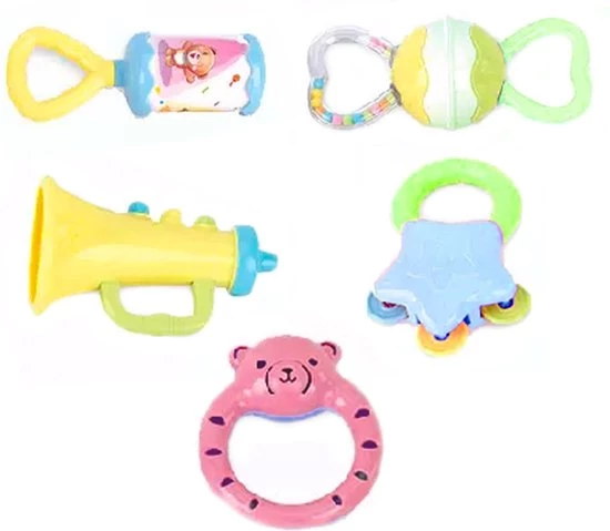 De rammelaar set bevat maar liefst 5 verschillende rammelaars. Deze hebben plastic onderdelen, dit is allemaal van veilig materiaal. Ook de bedrukkingen zijn niet giftig. Daarom is het ook geen probleem als de rammelaars in de mond worden gestopt. De ringen zijn zo afgewerkt dat deze geen scherpe randjes hebben, en dus geen gevaar zijn voor jouw kindje.