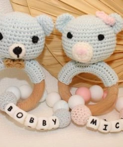 Luppa Rammelaar Olifant – Houten Rammelaar – Bijtspeelgoed – Cadeau – Siliconen- Blauw – Grijs