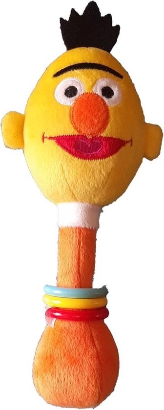 Een pluche rammelaar van Bert uit Sesamstraat. Schudt Bert heen en weer om hem geluid te laten maken.Ook heeft deze rammelaar 3 leuke ringen waar uw kindje mee kan spelen.