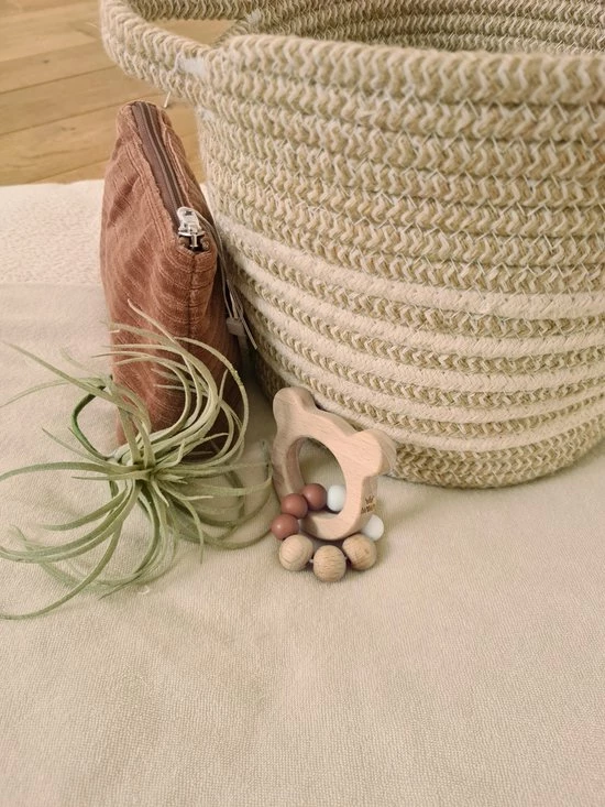 BamBam Eco-vriendelijk houten Bijtring Beer met siliconen kralen om mee te spelen en lekker op te bijten. De kralen zijn BPA vrij n dus veilig voor je kindje.