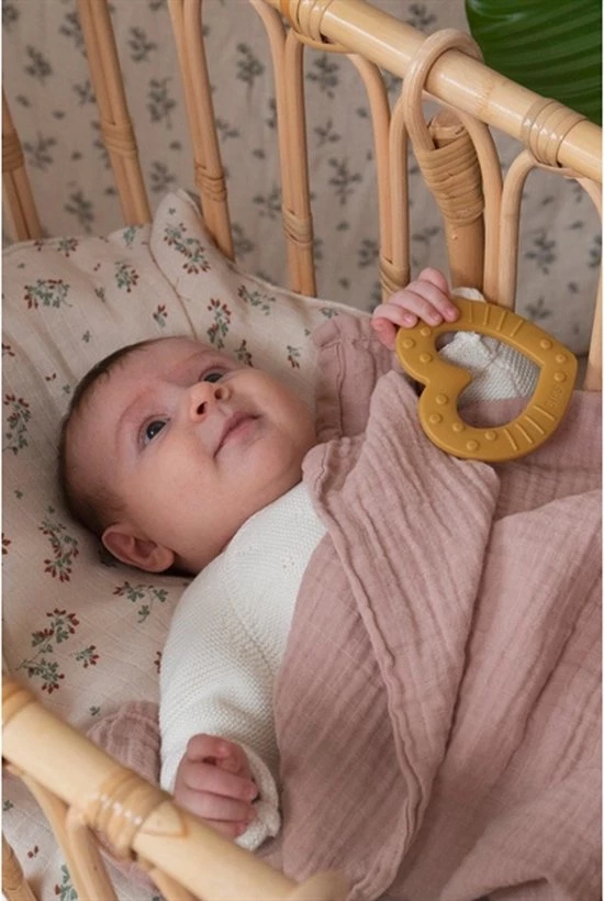 De Bibs Bitie bijtring zal de pijn bij doorkomende tandjes helpen verlichten. Deze leuke bijtring in de vorm van een hart is daarnaast een leuk speeltje voor je kleine!