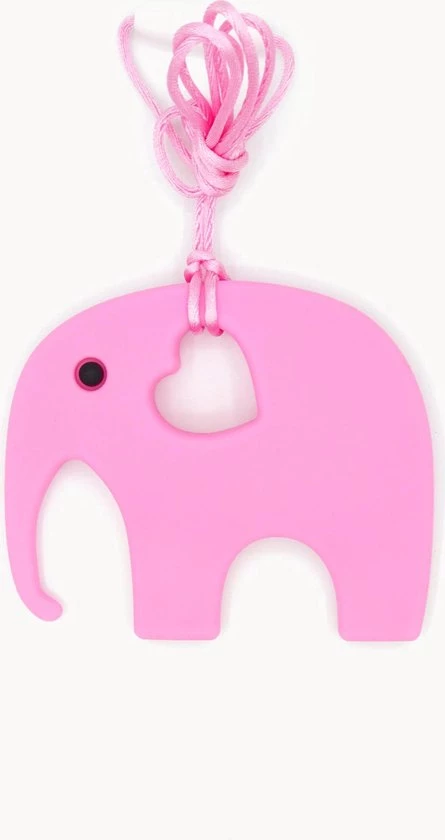 Dit leuke kauwsieraad, of bijtketting, is in de vorm van een olifant! De bijtketting is inclusief koord met sluiting en natuurlijk geheel veilig en zonder schadelijke stoffen. Met deze bijtketting hoef je je niet te schamen. Geschikt voor iedereen van jong tot oud.