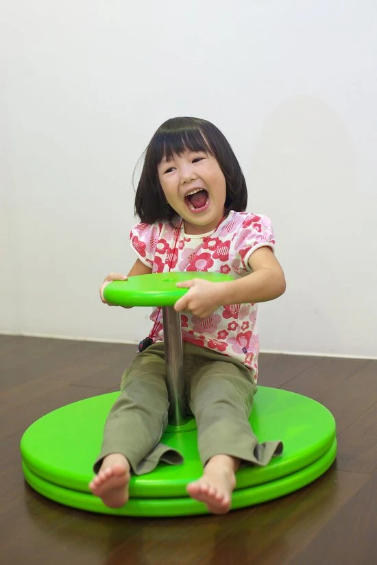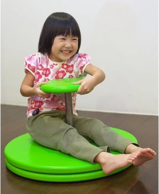 Kinderen zullen kernspieren rekruteren terwijl ze ontdekken hoe ze hun handen en armen moeten coördineren om zichzelf rond de centrale paal te manoeuvreren, wat een gevoel van prestatie en plezier geeft terwijl ze zichzelf sneller laten rondgaan. Ze hebben echter altijd de controle over hun snelheid, aangezien de Whizzy Dizzy alleen zo snel ronddraait als ze aan het stuur trekken.