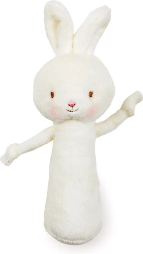 Een schattige rammelaar in de vorm van een konijn! Schud met de rammelaar hoor het belletje!