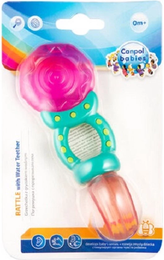 • waterbijtring – mogelijkheid tot koeling in de koelkast, de kou verlicht pijn tijdens tandjes krijgen,