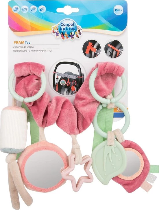 Kleurrijke hanger in pastelkleuren uit de PASTEL FRIENDS collectie past op een kinderwagen, autostoeltje en ledikantje. Twee montagemethoden maken het gemakkelijker om het speelgoed op te hangen. Het was gemaakt van aangenaam aanvoelend materiaal met een verschillende textuur. Stimuleert perfect de ontwikkeling van de visueel-auditieve en motorische coördinatie van het kind. Het speelgoed verbergt veel verrassingen die je kleintje lang bezig zullen houden. Het heeft een bel, rammelaar en ruisende elementen, een veilige spiegel en flexibele bijtringen.Een speelgoed bedoeld voor kinderen van 0m +.