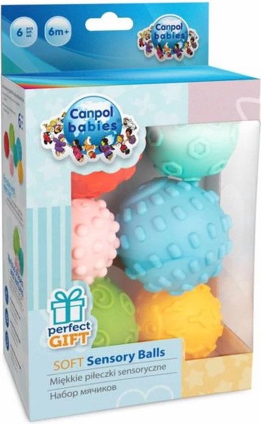 Zachte sensorische ballen bedoeld voor plezier en beweging vanaf de eerste levensmaanden. Ze helpen ouders de ontwikkeling van hun baby in een zeer vroeg stadium te ondersteunen. Verschillende vormen en texturen bieden kinderen verschillende zintuiglijke ervaringen. Hiermee kunt u het leren van grijpen trainen en de tastzin stimuleren. Levendige, vrolijke kleuren stimuleren activiteit en plezier. De ballen kunnen ook gebruikt worden voor een zachte massage. De set bevat 6 ballen van verschillende kleuren.