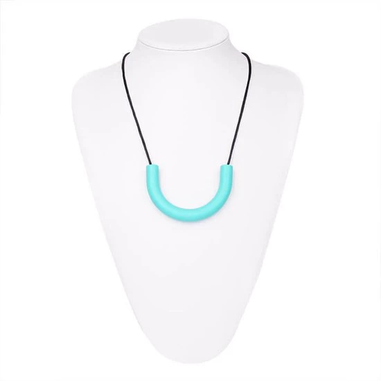 De Chewigem Curve bijtketting is een simpele kauwketting in de vorm van een gebogen buis met een koord er doorheen. Hij voelt glad aan. Deze gebogen hanger is geschikt voor volwassenen en kinderen met kauwbehoefte. Het kauwen op een kauwsieraad helpt bij het verwerken van prikkels en is een veilig alternatief voor kinderen en volwassenen die bijten op nagels of kleding.