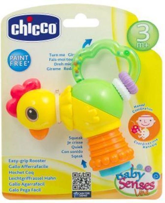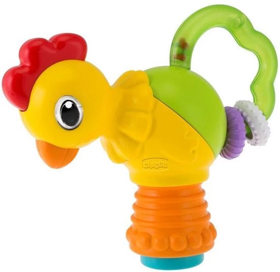 Chicco Rammelaar Kip. Geschikt voor kindjes vanaf 3 maanden. Deze leuke multicolor rammelaar houdt uw kindje urenlang zoet.