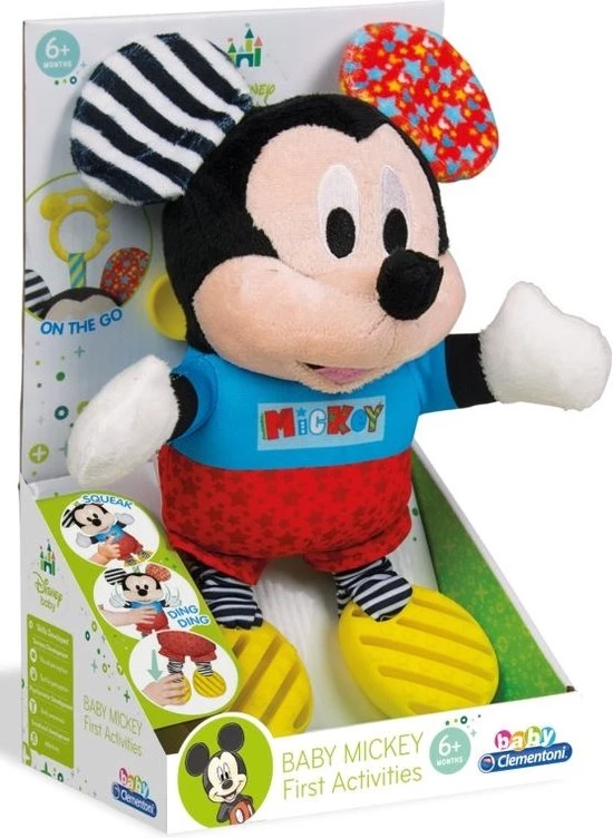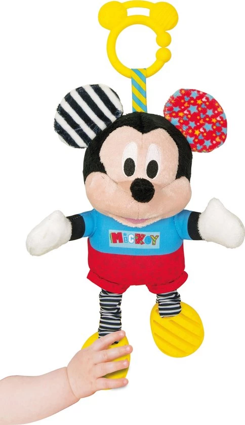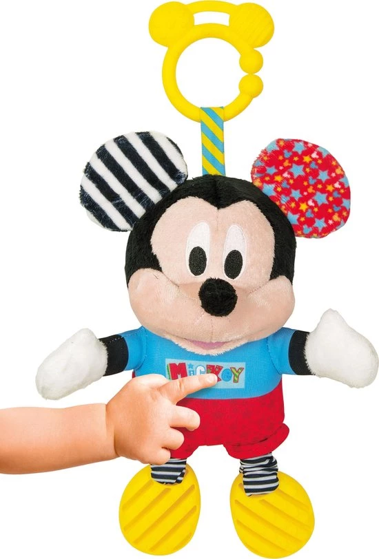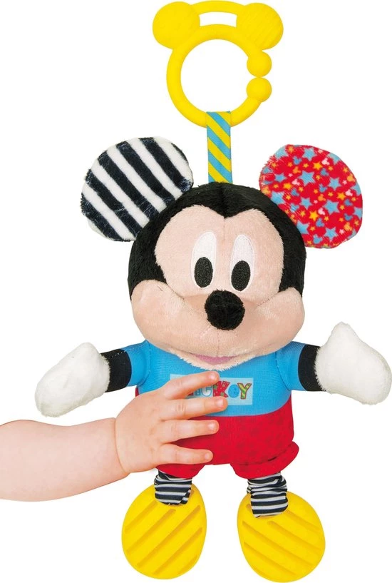 Een schattige Baby Mickey-knuffel met eenvoudige activiteiten, speciaal ontwikkeld voor jonge kinderen, met levendige kleuren om hun interesse te wekken en zicht te stimuleren.