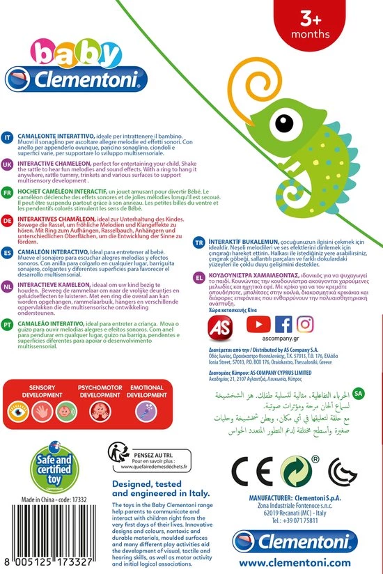 Rammel er op los met deze kameleon! De kameleon pak je op, hang je op aan zijn lus of aan een ring. Zo zet je deze multifunctionele kameleon overal neer! Met een muziekfunctie, rammelende ringen of zijn rinkelende maag neemt deze dino je mee op een rammelend avontuur.
