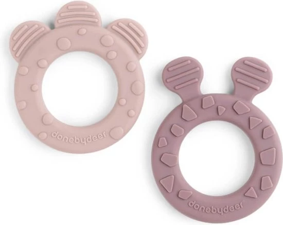 De Done By Deer Deer Friends Bijtring is ideaal bij doorkomende tandjes bij uw kindje. Wanneer uw kindje op de ring bijt zal het tandvlees zachter worden en hierdoor zal het minder pijn doen wanneer een tandje doorkomt. Verder is de bijtring gemaakt van kwalitatief materiaal en heeft deze verschillende structuren. De bijtring is gemakkelijk vast te houden met kleine kinderhandjes en draag ook bij aan de ontwikkeling van uw kindje.