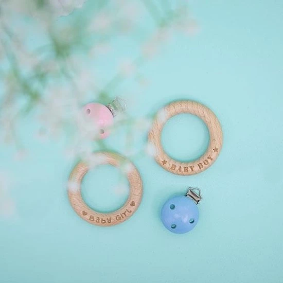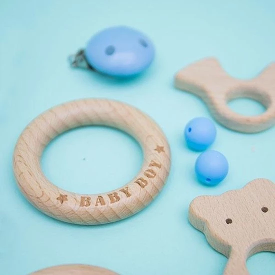 Durable Houten Bijtring Baby Boy – De Durable bijtringen zijn gemaakt van glad beukenhout en heeft een diameter van 70mm. Haak of brei een rammelaar en bevestig de houten bijtring eenvoudig aan je werk. Ook is de ring leuk om te gebruiken aan een babygym. Je kleintje is er uren zoet mee.