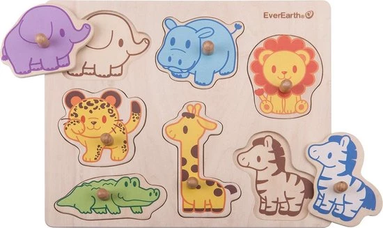 Duik de jungle in met deze houten vorm puzzel met safari thema! Jouw kind leert spelenderwijs vormen en dieren bij elkaar te plaatsen door dieren te herkennen.