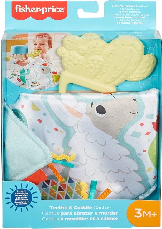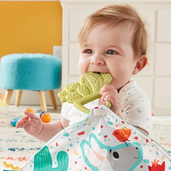 Groen is een heerlijke smaak. De Fisher-Price Bijt- en Knuffelcactus is een bijtspeeltje van natuurlijk rubber met een zacht doekje om onderweg of thuis mee te knuffelen en te spelen. Het bijtspeeltje in de vorm van een cactus heeft structuur en is gemaakt van stevig, volledig natuurlijk rubber. Het speeltje bevat geen gleuven of openingen waarin speeksel kan achterblijven. Het zachte doekje is superknuffelbaar en bevat verschillende texturen om de tastzin van je baby te ontwikkelen. En het kauwmaatje van je kleintje schoon houden is geen probleem: zowel het bijtspeeltje als het doekje mogen in de wasmachine.