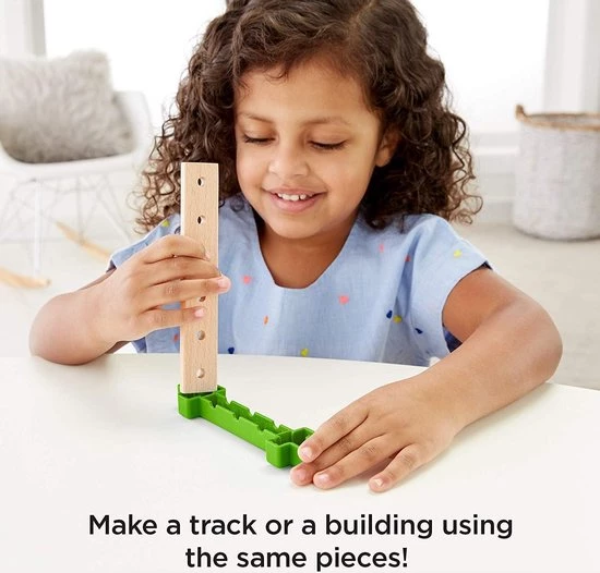 - āMeer dan 35 onderdelen waaronder houten baanstukken glijbanen kratten een vrachtwagen en nog veel meer