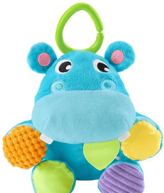 Met de Fisher-Price Nijlpaardbal kan je baby gezellig knuffelen en vervolgens lekker overgooien. De Nijlbaardbal heeft verschillende leuke structuren die de kleine handjes kunnen ontdekken. Met de verwijderbare clip neem je het plezier gemakkelijk overal mee naartoe.