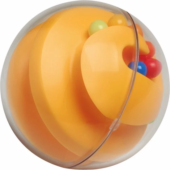 Laat jouw kleine dreumes lekker rammelen met deze oranje rammelaar van Haba. De kleurige knikkers maken een vrolijk geluid.