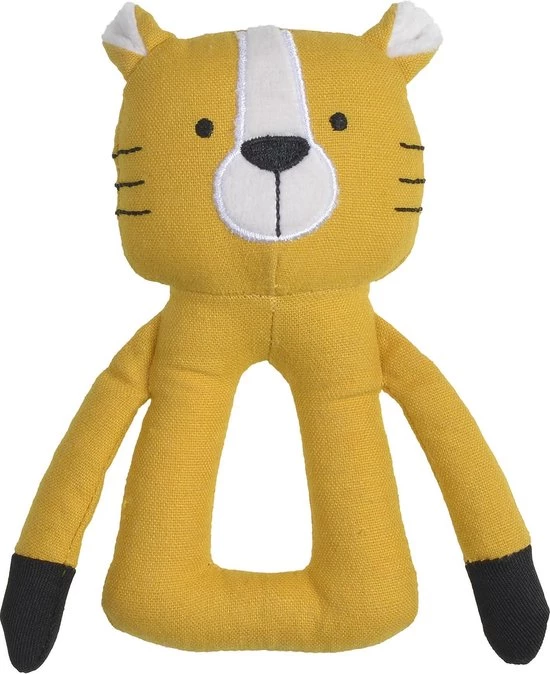Wil je ook lekker spelen met deze stoere rammelaar van Tijger Tyson? Hij is gemaakt van stoer geel geweven katoen van uitstekende kwaliteit gecombineerd met witte zacht pluchen delen.