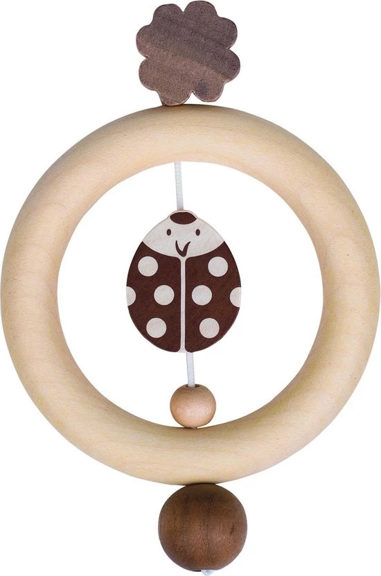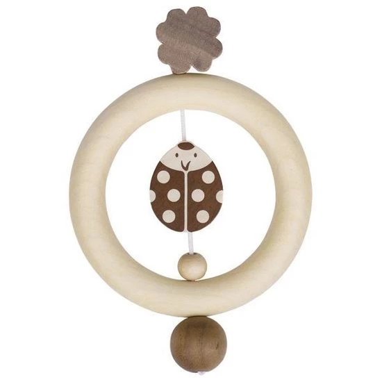 Mooie naturel houten bijtring met een lieveheersbeestje. Deze bijtring is niet alleen geschikt voor je kindje bij doorkomende tandjes, maar ook leuk als speeltje om naar te grijpen.