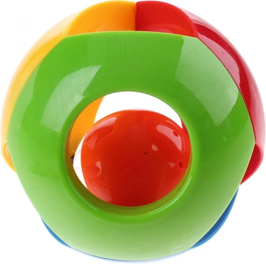 Superleuke bal met rammelaars erin. Deze bal bevordert op een speelse manier de oog-handcoördinatie van jouw kind.