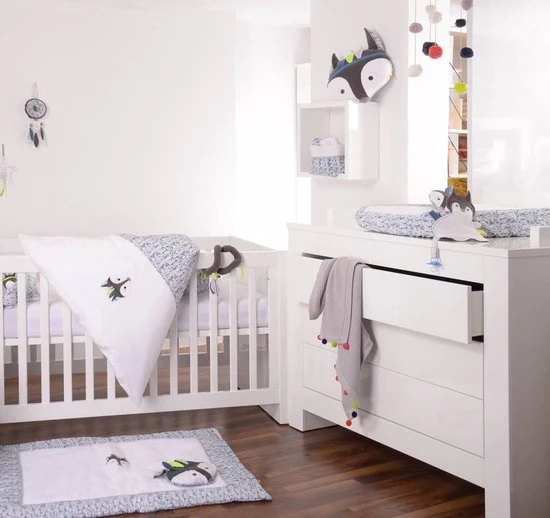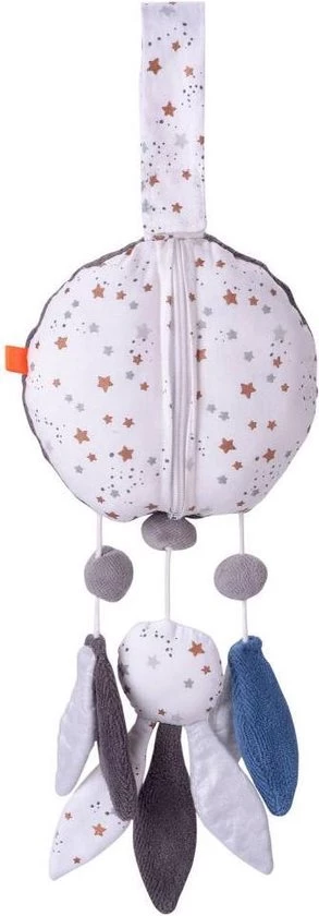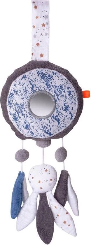 Prachtig design en gemaakt van 100% Organisch katoen. Deze muzikale dromenvanger is zacht. Trek je aan het middelste veertje, dan hoor je een rustgevende baby lullaby. (brahms guten abend gute nacht)