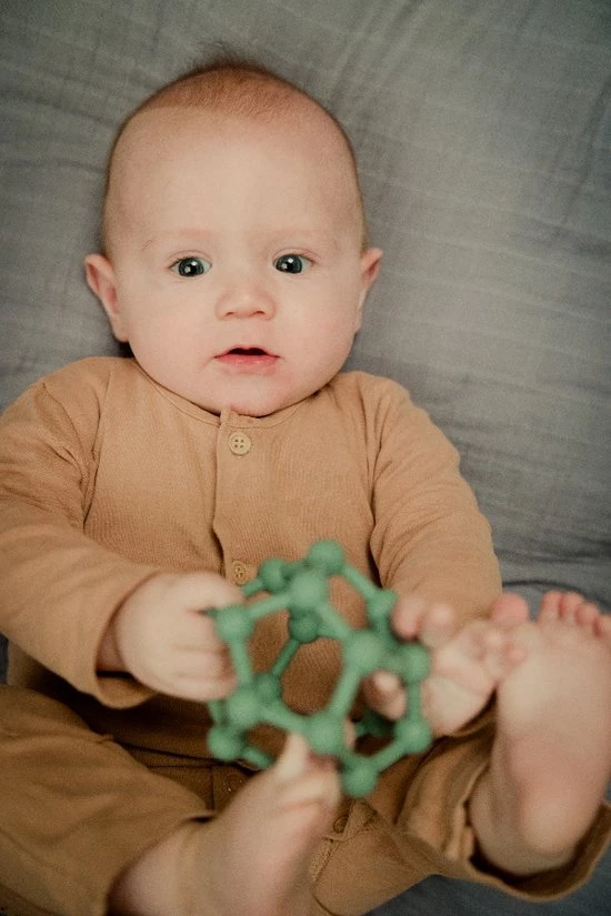 Label Label bijtspeeltje is ontworpen in de vorm van een bal. De bijtring is te gebruiken vanaf het doorkomen van de eerste tandjes van je kleintje, vanaf 6 maanden.De Label Label bijtring heeft geometrische vormen en de bal is zodanig ontworpen dat hij makkelijk is vast te pakken door de kleine handjes van je kleine.Verder is de bal licht en ook ideaal voor je kleintje om mee te spelen. Het materiaal is fijn om op te bijten wanneer de tandjes van je kleintje doorkomen. Kenmerken: