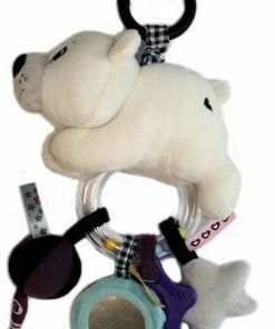 Je bevestigt dit trilfiguur makkelijk met de ring aan een bedje, box, kinderwagen of autostoel. Door aan het ijsbeertje te trekken gaat het trillen.