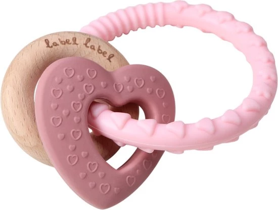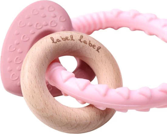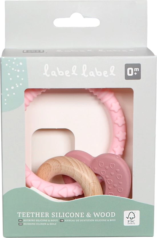 Wat een fijne en mooie bijtring is dit van Label Label! De bijtring is gemaakt van siliconen en heeft een silicone en hout ring eraan. Zo leert je kleine verschillende structuren herkennen.