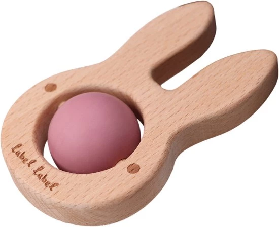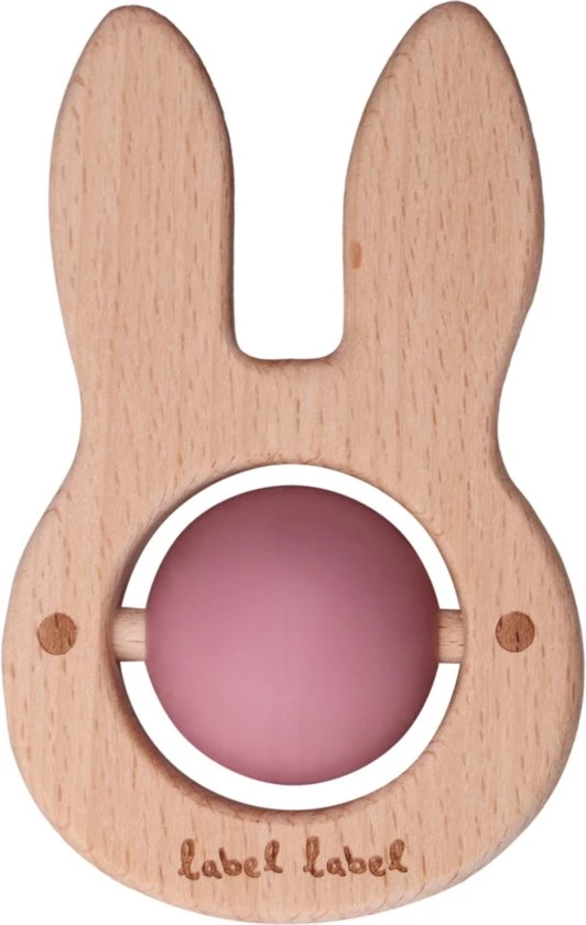 Dit leuke bijtspeeltje van Label Label is gemaakt van hout en silicone. Het speeltje heeft de vorm van een konijn en in het midden vind je een silicone balletje waarmee je kleine kan spelen. Daarnaast kan je kleine op alle onderdelen bijten.