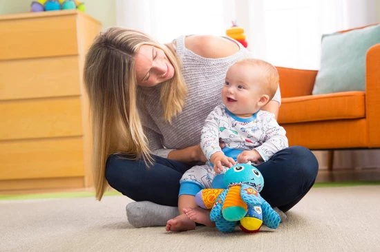 De Lamaze Zoute Sam Octopus heeft 8 tentakels om te ontdekken en deze bevatten boeiende texturen en krinkelgeluiden waardoor je baby aangemoedigd wordt om te grijpen en te ontdekken. Met een pieper en klokkenspel is dit speelgoed perfect om de motoriek en auditieve vaardigheden te helpen ontwikkelen. De verschillende stoffen, de kiekaboe spiegel en de felle kleuren van Zoute Sam zorgen voor de visuele ontwikkeling van je baby. Met de handige ophangclip kun je dit speelgoed eenvoudig ophangen aan kinderwagens en luiertassen. Leeftijdsindicatie: 0 jaar+.