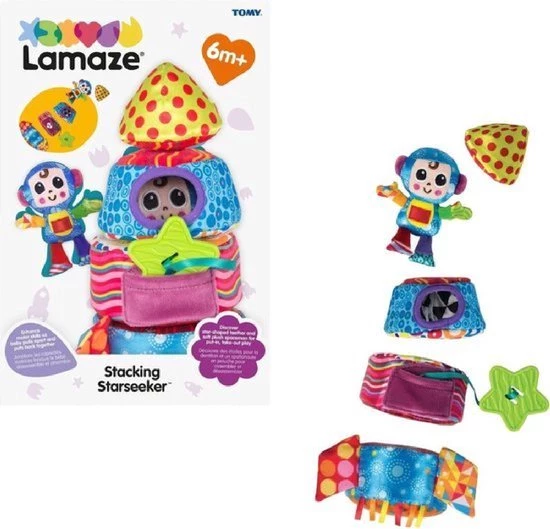 Maak je klaar om de lucht in te gaan met het Stapel Ruimteschip van Lamaze. Dit kleurrijke, pluchen Ruimteschip kan worden gesplitst in 4 delen, waarmee kindjes hun motorische vaardigheden kunnen oefenen door te stapelen, uit elkaar te halen en weer op te bouwen. De felle, contrasterende patronen en verrassende krinkelgeluidjes stimuleren je baby om steeds weer iets nieuws te ontdekken. Leeftijdsindicatie: 6 maanden+.