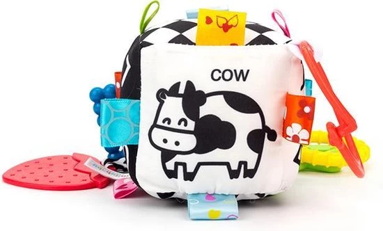 Schattig zwarte witte kleine kubus met kleurrijk accessoires maakt dit ontdekkingsspeelgoed een hele interessante voor je kleintje om mee te spelen. Help baby’s eenvoudig onderscheid te maken tussen verschillende stoffen en kleuren te herkennen.Zodra je baby of peuter zijn of haar handjes en voetjes ontdekt, zal hij of zij uren speelplezier beleven aan deze knuffel met verschillende kleurtjes, geluidjes en stofjes. Doordat het gemaakt is van pluche zijn de rammelaars heerlijk zacht!