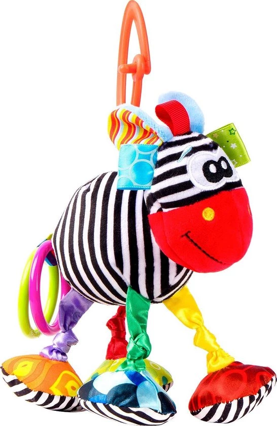 Schattige Ezel/Donkey, kleurrijk ontwerp waar veel aan te ontdekken valt. Maak de ring vast aan een kinderwagen en probeer de vibratie functie uit.