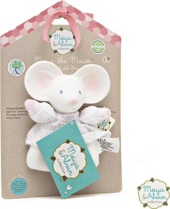Meiya de muis en Alvin de Olifant zijn super leuke bijtspeeltjes en knuffles die gemaakt zijn van 100% natuurlijk rubber & 100% Biologisch Katoen. De verpakking wordt geproduceerd met gerecycles karton en is zelfs bedrukt met op soja gebaseerde inkt. Deze 2 vriendjes hebben een super lieve uitstraling. Het bijtspeelgoed is makkelijk vast te pakken en ideaal als de tandjes doorkomen. Geschikt voor 0+ maanden