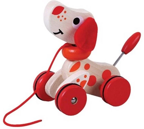 Simply for Kids houten trekpuppy. Wat een vrolijk hondje! Ditleuke trekfiguurtje staat te popelen om uitgelaten te worden.