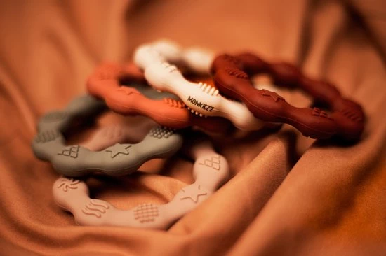 MONKIEZZ® SILICONEN BIJTRING MET STIMULERENDE FIGUURTJES VOOR ZOWEL MOTORIEK MET HANDEN ALS VERZACHTEND VOOR DOORKOMENDE TANDJES.