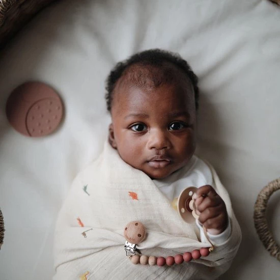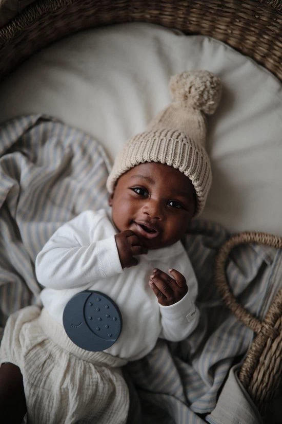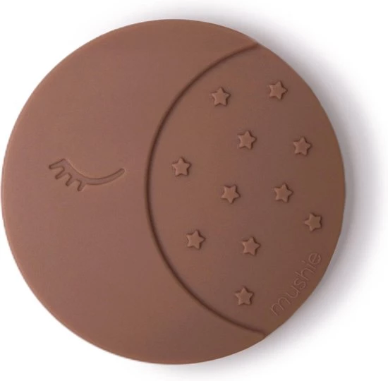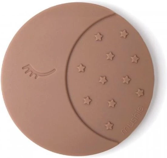 Mushie heeft een siliconen bijtring ontworpen in de vorm van een maan. De Mushie bijtring is te gebruiken vanaf het moment dat de eerste tandjes doorkomen, rond de 6 maanden.Verder is bijtring prachtig van vorm en heeft op de achterkant maantje en sterren afbeeldingen. De bijtring is gemaakt van 100% siliconen en geheel BPA vrij en kan met warm water schoongemaak worden. Ook leuk als kraamcadeau, een eco keuze.Kenmerken