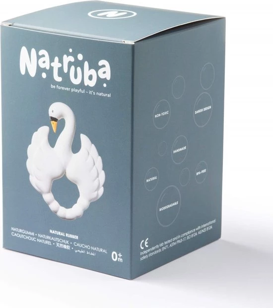 Zoals alle producten van Natruba is deze zwaan volledig natuurlijk, milieuvriendelijk en niet-giftig (vrij van PVC, BPA, ftalaten en nitrosaminen). En zonder gaatje, wat betekent dat er zich geen schimmels en bacteriën in de zwaan kunnen verzamelen. Veilig en verantwoord speelgoed, wat er ook nog eens gewelig uitziet!