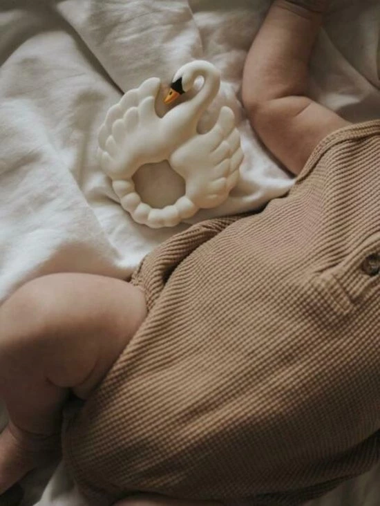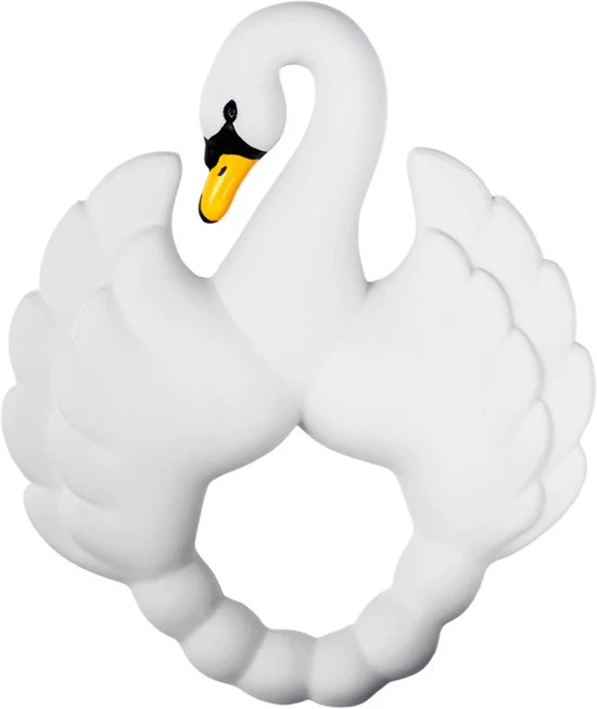 Speciaal ontwporpen voor eenvoudige grip voor kleine handjes en geeft perfecte verlichting voor pijnlijk tandvlees. De zwaan heeft verschillende oppervlakken voor zintuiglijk spelen en heeft zowel zacht als hard natuurlijk rubber voor alle stadia van pijnlijk tandvlees.