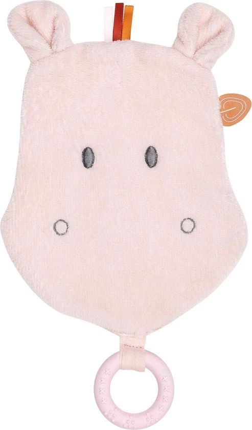 - Siliconen diertje makkelijk vast te pakken met babyhandjes, absorberend knuffeldoekje met gleuf voor het bevestigen en verwijderen van de bijtring