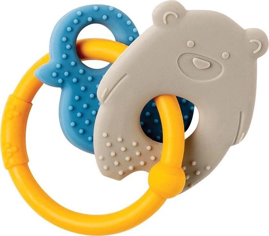 - Leveringsomvang: 1 x Nattou bijtring, beer en eend, materiaal: siliconen (BPA-vrij), afmetingen: 8 x 10 x 4 cm, kleur: blauw / beige / oker, 879521