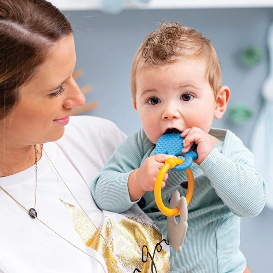 De verschillende texturen van het oppervlak zijn vaak voelbaar en tegelijkertijd masseren ze zachtjes het gevoelige tandvlees van baby’s en kleine kinderen.