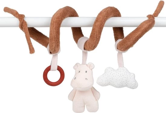 De zachte speelspiraal biedt plezier en amusement – thuis of onderweg. Het kan snel en flexibel aan het bedje, de box of het babyzitje worden bevestigd en biedt tal van details om te ontdekken en te begrijpen. De grappige rammelgeluiden die door de beweging worden gemaakt, zorgen voor nog meer plezier en bevorderen bovendien de auditieve waarneming van de kinderen.