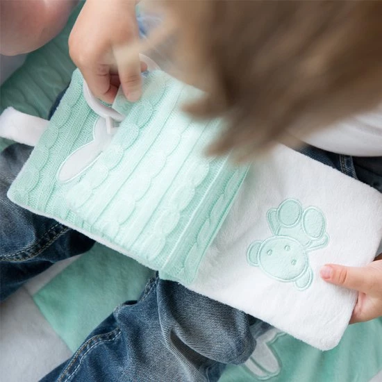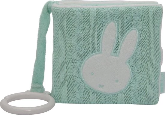 Een leuk pluche speelboekje van Nijntje, eenvoudig ergens aan vast te maken. Kleur: mint.