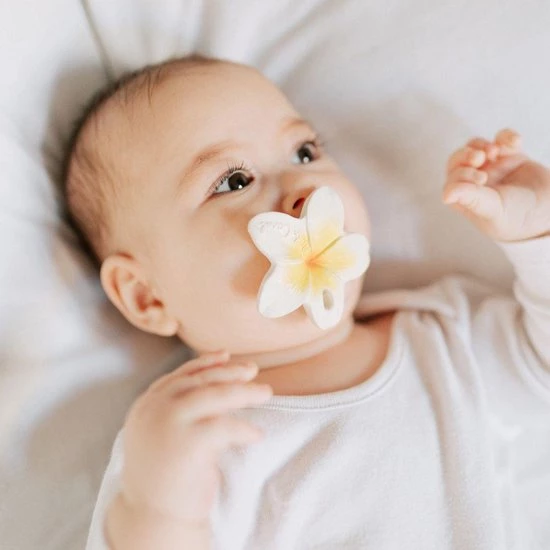 Grappig bijtspeeltje Hawaii bloem uit de nieuwe chewy to go mini collectie van Oli&Carol, dit bijtspeeltje heeft een ergonomische vorm waardoor het voor baby’s erg makkelijk is om het bijtspeeltje vast te houden. De verschillende texturen zoals bobbeltjes en puntjes maakt het bijtspeeltje erg plezierig om op te bijten en te sabbelen.