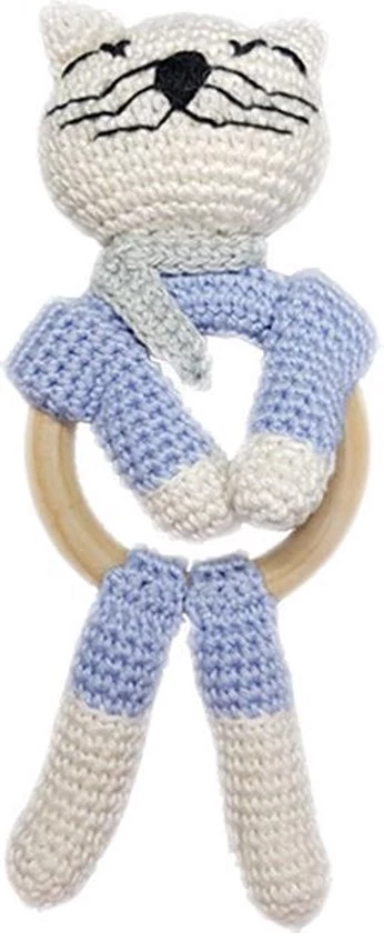 Deze leuke gehaakte rammelaar van “Per il Bambino” in de vorm van een poes wordt vast het favoriete speelgoed van je baby. Het rinkelende geluid van de knuffelbare poes stimuleert de hand-oogcoördinatie en prikkelt de nieuwsgierigheid van je baby en is makkelijk vast te houden aan de houten ring. De rammelaar is gehaakt van zacht katoen draad