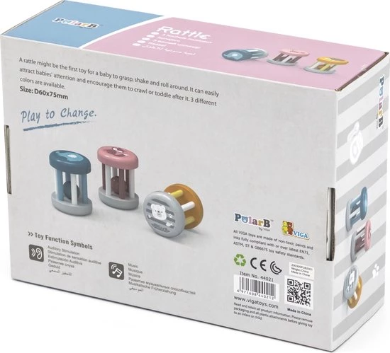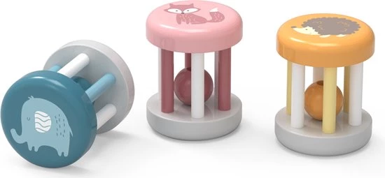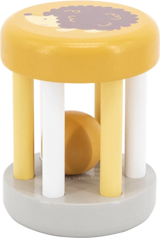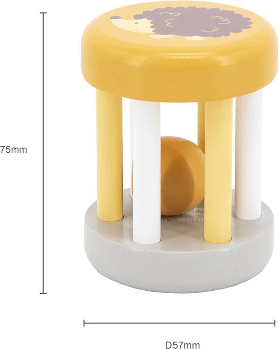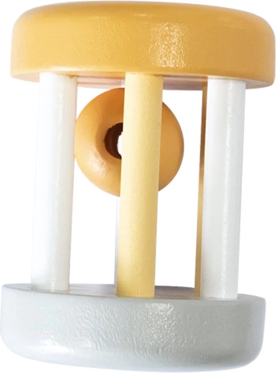 Wat zal jouw kleintje veel speelplezier beleven met deze rollende houten rammelaar van PolarB! Dit leuke speeltje maakt een rammelend geluid en is licht van gewicht. Ideaal dus voor de kleine babyhandjes. De houten rammelaar is geel met grijs en wit en heeft een balletje in het midden welke een rammelend geluid maakt.