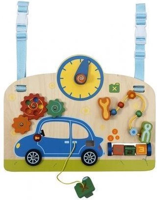 Uw kind zal zich prima vermaken met dit houten activity bord aan zijn/haar box. Handig te bevestigen met 2 banden. Dit activity center van Primi Passi is een zeer uitgebreid speelpaneel voorzien van diverse educatieve toepassingen. Spiegel, kralen, blokken, schuiven, draaien, rollen en nog veel meer. Reuze handig om in de box te hangen of op de grond te leggen. Leeftijd: vanaf 6 maanden. Afmeting: 40 x 30 cm.
