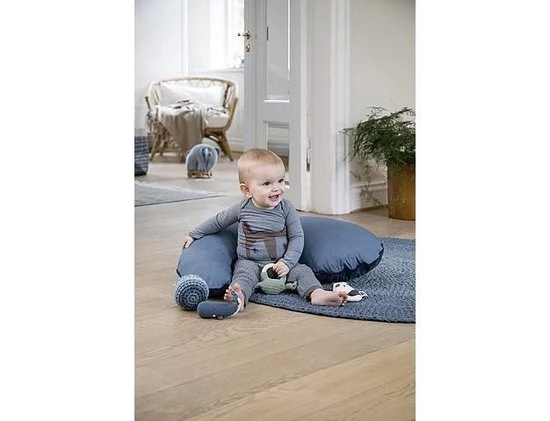 Gehaakte rammelaar met houten ring van het Deense merk Sebra. Handgehaakt van 100% katoen, een ideaal kraamcadeau ! H: 16 cm B: 11 cm